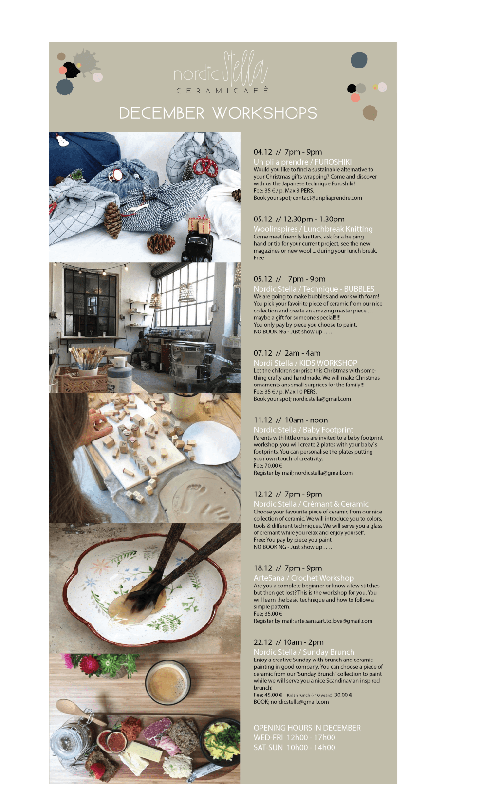DECEMBER WORKSHOPS . . .